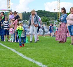 Pomiędzy atrakcjami, na każdego z uczestników czekało stanowisko przy ognisku z zestawem do pieczenia. Ta kulinarna część wyraźnie spodobała się młodym uczestnikom nie tylko z powodu zaspokojenia pragnienia i głodu. To tutaj, przy dźwiękach gitary lub konkursów karaoke czy podczas zajęć manualnych, odpoczywali uczestnicy spotkań. Ponieważ lipcowa pogoda i słońce dają się wszystkim we znaki to podczas zajęć dzieci skwapliwie korzystały z wody przygotowanej przez organizatorów.