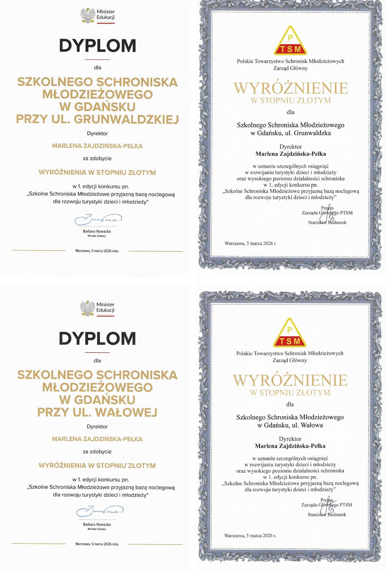 Z przyjemnością informujemy, że Szkolne Schronisko Młodzieżowe w Gdańsku przy al. Grunwaldzkiej 244 oraz przy ul. Wałowej 21 – zostało uhonorowane prestiżowymi wyróżnieniami za swoją działalność na rzecz rozwoju turystyki dzieci i młodzieży.